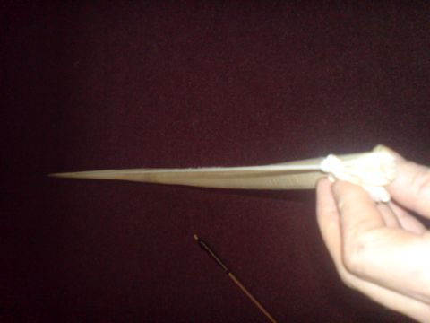 Leg ihn mal auf die Waage, habe mal eben überschlagen gerechnet, gewicht sollte um 720 Gramm sein wobei ich von einer "steiferen" Griffzone von 4" ausgegangen bin.