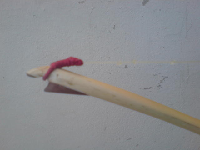 Mein erster Bogen ist mir leider zerbrochen. Den habe ich dann geleimt, um ihn mir als Deko an die Wand zu hängen. Jetzt steht er aber beim Feuerholz und warte auf seine feierliche Verbrennung. Mittlerweile habe ich genug richtige Bögen für die Wand.