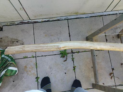 naja - was willst Du denn mit einem 2m Schießholz? Das ist gut zu lang. Es gibt drei Möglichkeiten: entweder a) absägen, oder b) den Stave rausarbeiten, dämpfen und dann begradigen, oder c) ihm auf der geraden Seite die gleiche Krümmung reindämpfen und dann als "Recurves" nutzen. Hat jemand noch andere Vorschläge???