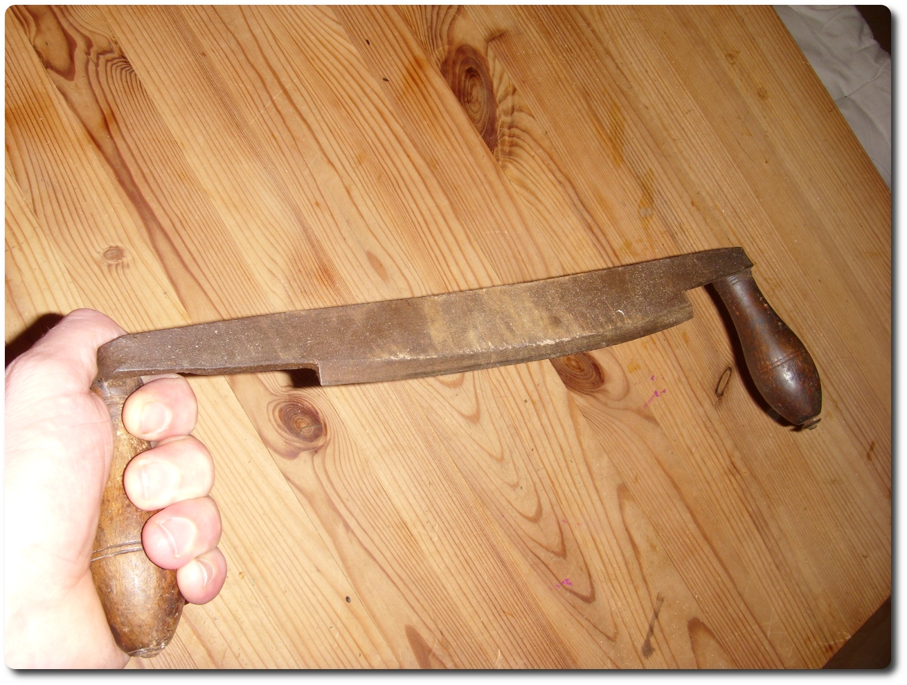 Zu gewinnen gibbet ein chiques, altes Ziehmesser. Muss wohl geschärft werden, allerdings ein super Stahl!