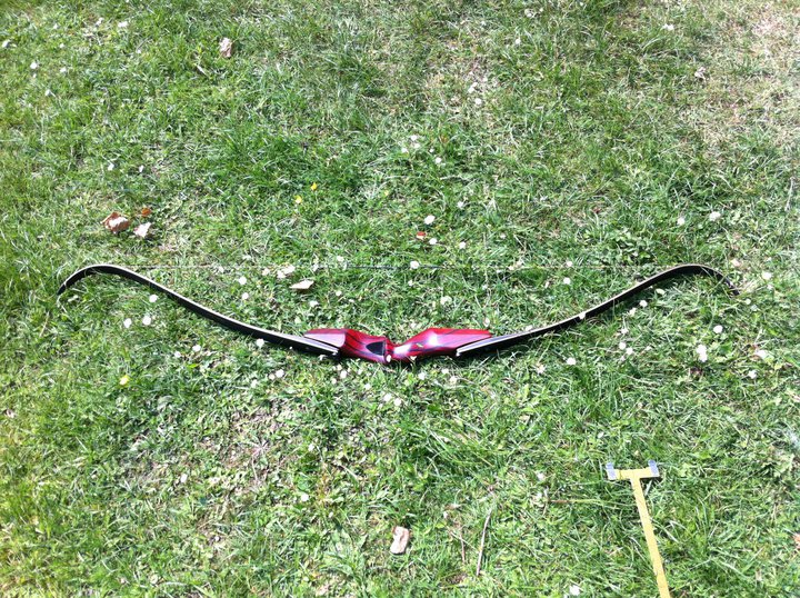 Daten: 60" Länge, 40-48lbs@28". Bei meiner Auszugslänge von 29,5" auf 49 lbs eingestellt.