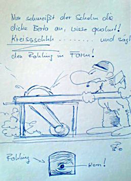 Der an der Kreissäge sieht aus wie ich beim Laminate schneiden sagt Madam