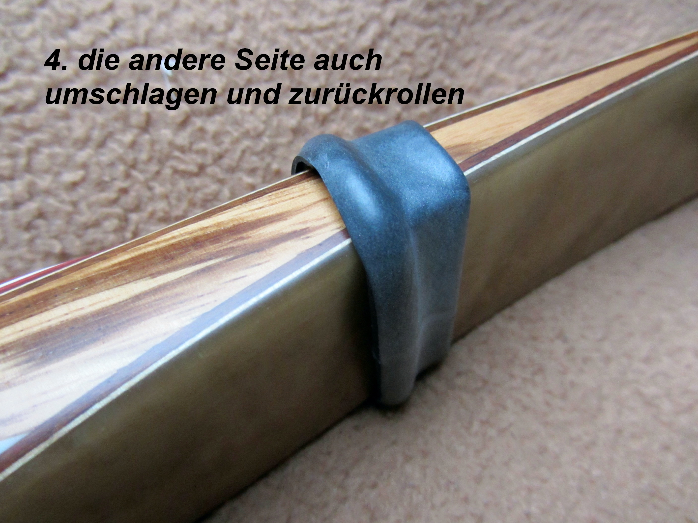 Das Anbringen einer Unterfütterung am Wurfarm des Bogens verhindert ein mögliches Klappern und ein Verrutschen des Bogenköchers auf dem Wurfarm. Den Schlauch nicht ankleben!! So kann er jederzeit wieder entfernt werden. Der Gummi besitzt ausreichend Gripp.