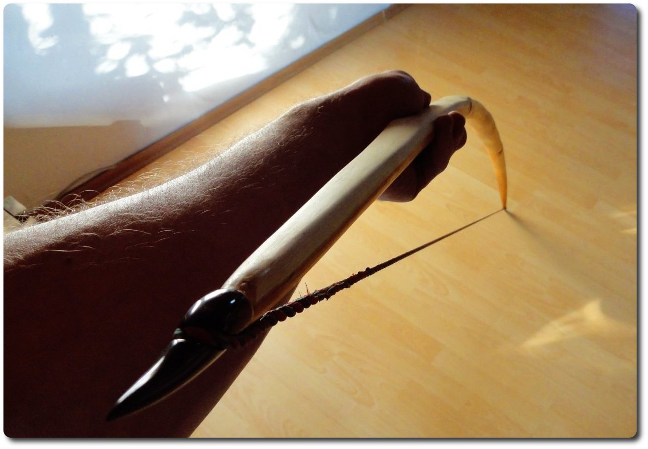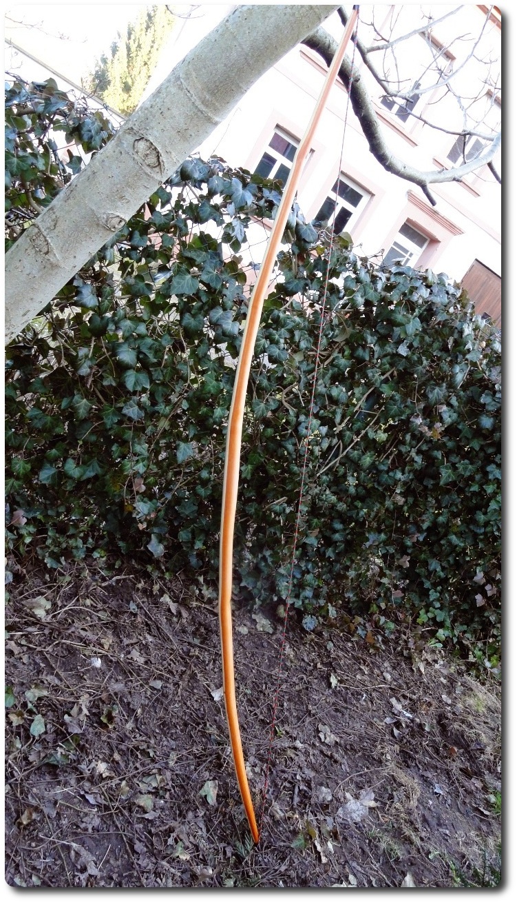 Ein wirklich schönes Teil, dieser gebogene Eibenstab. Die Besonderheiten, wie die Astverfärbungen, stehen ihm...äh, ihr wirklich gut.