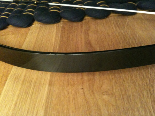 Dem Foto nach würde ich diesen Kratzer (oder vielleicht eher Lackabsplitterung?) als rein optischen Mangel bezeichnen, der den Bogen vorerst nicht gefährdet.