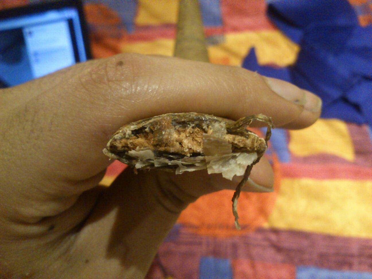 Was sind denn diese blättrigen Strukturen (erstes Bild) auf der Unterseite des Kerns? Delaminiertes Horn??
