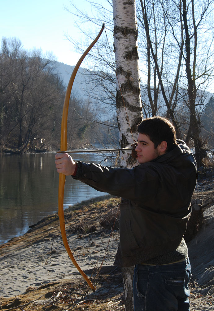 @Sipi das Stück Holz ist sogar für Osage unglaubich steif, wie an den Amessungen zu ersehen sind die Wurfarme am Übergang zwischen mittlerem und äusserem Drittel bei Linsenförmigem Querschnitt gerade mal 24mm breit und nur 10mm dick. Auch am Gewicht des Bogens ist das zu erkennen, die Dichte dieses Stücks ist hoch, sicherlich über 0,8 trotzdem ist der Bogen mit 543g bei dem Zugewicht sehr leicht.