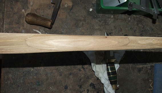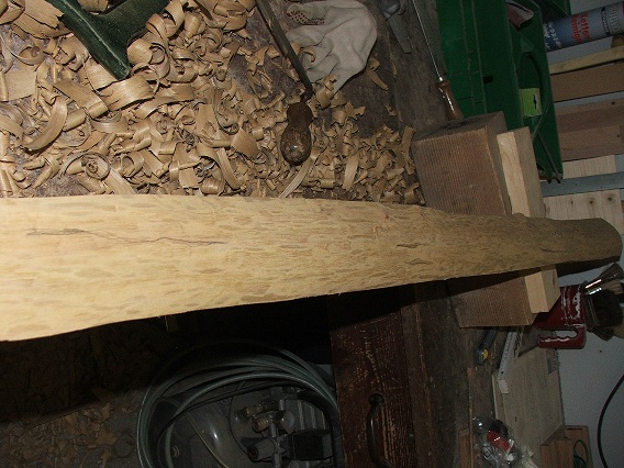 Habe jetzt erst mal einen Eschenrohling rausgesucht. Mit dem Rücken freilegen habe ich auch schon angefangen.