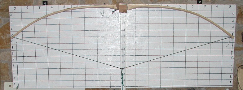 Wie angekündigt mal ein paar Bilder vom jetzigen Zustand. Der Bogen wird wenn die Overlays drauf kommen auf jeder Seite noch ein Stück gekürzt, dann rücken die Kerben noch mal 1,5 - 2 cm rein. So wie er ist hat er 40# auf 20", 45# auf 22" und nur rechnerisch ca. dann wohl 50# auf 24" ( noch nicht gezogen ). Also mit kürzen noch genug Luft zum tillern bis ca.50# auf 28".