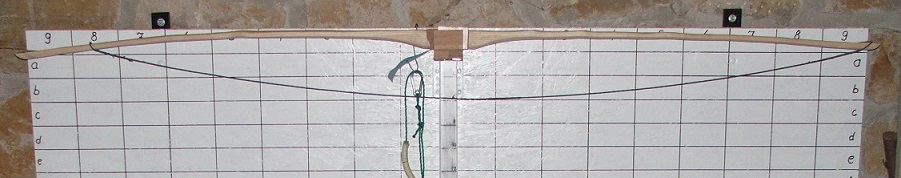 Ein paar kleine Schritte bin ich auch weiter gekommen. Kleine Recurves sind dran und helles Kuhhorn als Tips aufgeleimt. Die WA wurden nach dem aufleimen noch mal 1 cm gekürzt. Auf den Tillerfotos hängt die Sehne hinterm Horn auf dem noch überstehenden Holz. Das Pflaster ist sehr gut gelungen, auch wenn ich es optisch nicht mit den Jahresringen passend bekommen habe, aber funktionell ein 100 % Erfolg. Ist ja auch erst grob überschliffen, und was wie wie ein leichter Knick am Rücken aussieht ist die Überhöhung durch die seitliche Verwerfung im WA an dieser Stelle. Der rechte WA hat nach dem Fadeout bis ca. mitte WA einen leichten Reflex was den Tiller auf Standhöhe ziehmlich unterschiedlich macht. Wenn man den Weg von der Ausgangsposition der Tips bis zum Auszugspungt vergleicht, legen sie aber den selben Weg zurück. Mal sehen wie sich das noch entwickelt, oben und unten ist noch nicht festgelegt ;)