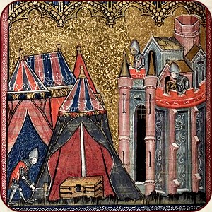 Mir fällt da Jean Froissarts Chronik über den hundertjährigen Krieg ein, da gibt es bestimmt Abbildungen von Zelten. Hier kann man sich die illustrierten Manuskripte anschauen: http://www.hrionline.ac.uk/onlinefroiss ... mmentaries