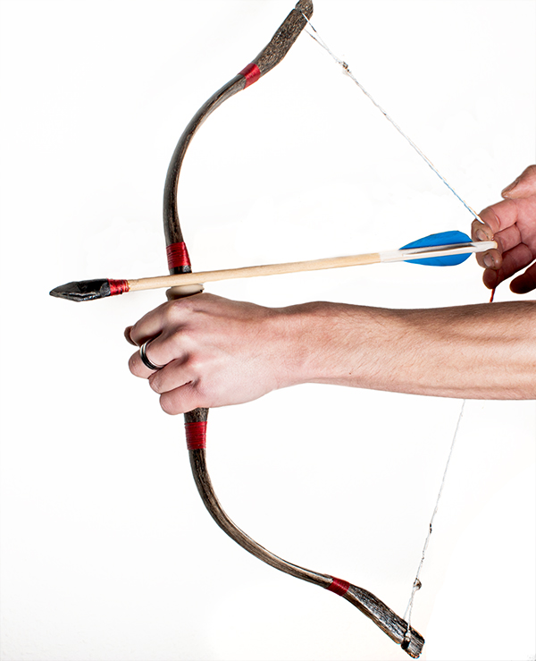 Der Pfeil dazu ist ein alter, gebrochener von mir mit einer Spitze aus gerollten, verklebten und verschmolzenen Moosgummi.