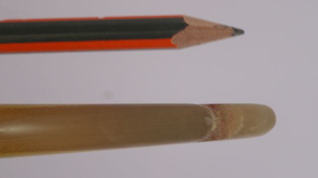Nun gefällt mir aber das Gelb eines neuen Osage Bogens nicht besonders. Daher bekommt der Bogen gerade (und noch bis morgen Abend) eine recht spezielle Oberflächenbehandlung, die ich bei Bögen bisher nicht gesehen habe. Ich hoffe nur, es klappt (kann den Fortgang leider nicht kontrollieren). Mehr dazu aber in der Präsi