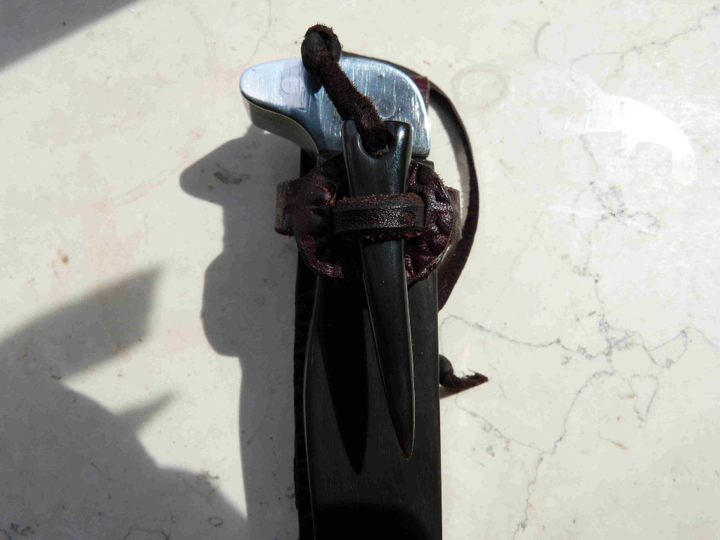 Ich hab mal wieder etwas Zeit gehabt und meine Ausrüstung erweitert. Das Messer ist noch nicht fertig. Die Griffschale is noch in Rohform und die Mosaikpins fehlen noch. Die Gürtelschlaufe des Pfeilputzers muss auch nochmal gemacht werden da das Leder sich irgendwie von hinten auflöst. Irgendwie schlecht gegerbt!?![attachment=0]