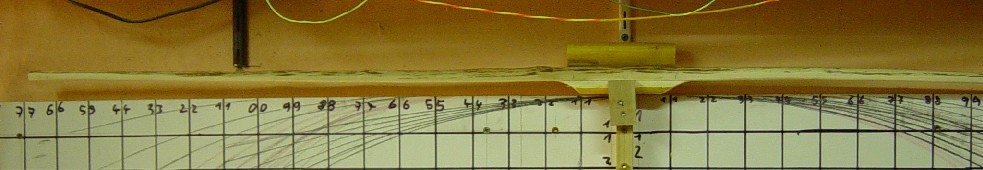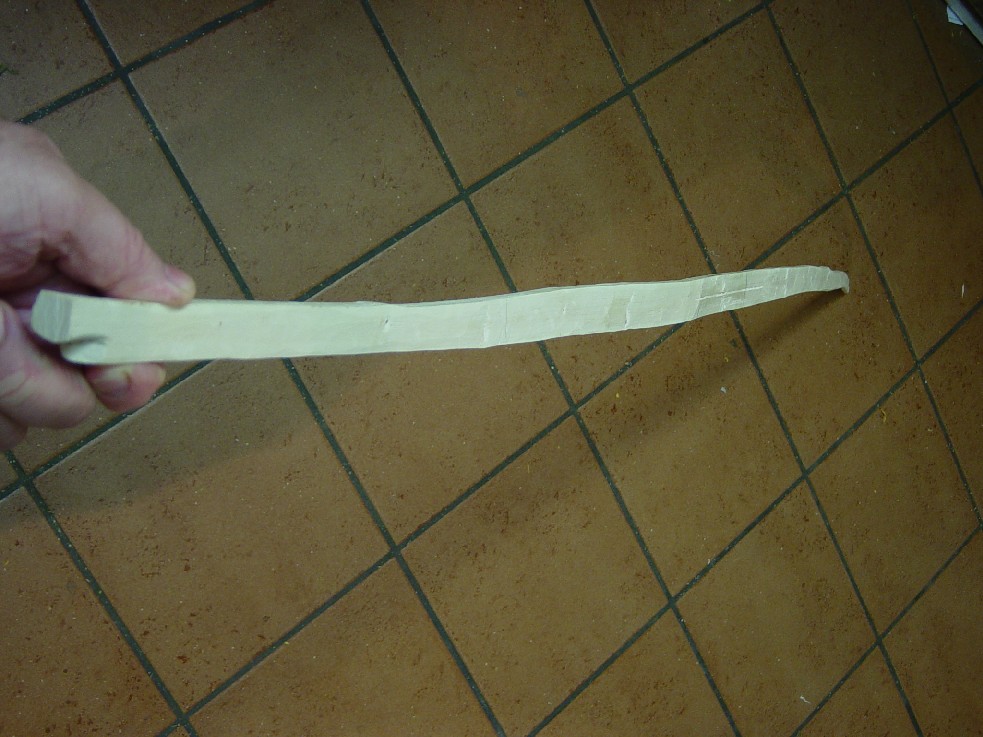 Inzwischen habe ich ein Stück Weissdorn zur Griffverstärkung aufgeklebt, und der Bogen ist auch mehr oder weniger fertig getillert. Das Zuggewicht beträgt aktuell 52#/28", was vermutlich heisst, daß ich nach dem Finish vermutlich ziemlich exakt bei den von mir gewünschten 50# landen werde. Das Gewicht ist auch im grünen Bereich mit knapp unter 500g.