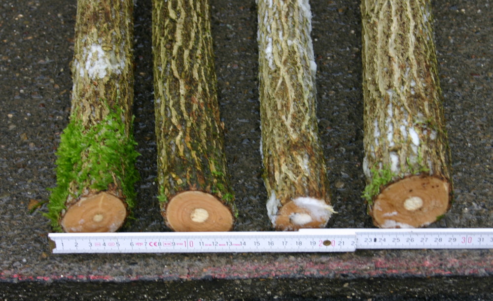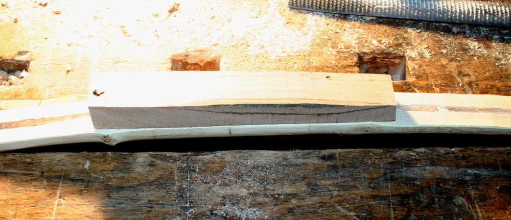Ich hab mir schon gedacht, dass es so reibungslos nicht weitergehen kann. Der rechte Wurfarm hat in der Mitte einen starken Ast, der jedoch nicht so sehr nach aussen dringt. Ich hab den Wurfarm an dieser Stelle einfach nicht zum Biegen gebracht.