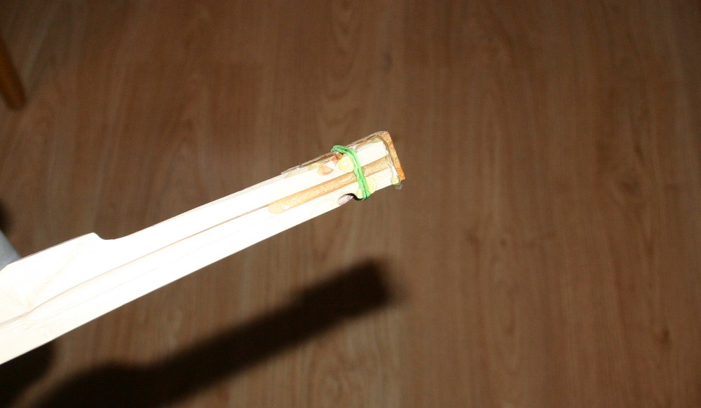 Nun ging´s an´s tillern. Der linke (obere) Wurfarm war etwas reflex und der rechte (untere) Wurfarm war etwas deflex.
