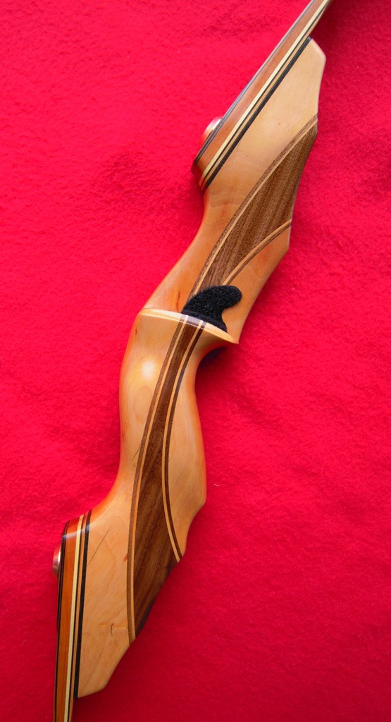 auch wenn ich hier schon lange nichts mehr präsentiert habe heißt das nicht, dass ich untätig war. Habe in letzter Zeit mit meinen Take Downs etwas herumprobiert (WA-Länge, -Design u. -Winkel etwas optimiert, Griff etwas anders geformt usw). Heute möchte ich euch einen meiner zuletzt gebauten zeigen. Zuggewicht moderate 30#. WA-Kernlaminat besteht aus Holler. Zierfurnier am Rücken ist indischer Apfel. Griff wurde aus Birne u. Nußbaum gefertigt. Tips bestehen aus Micarta u. Zwetschke.