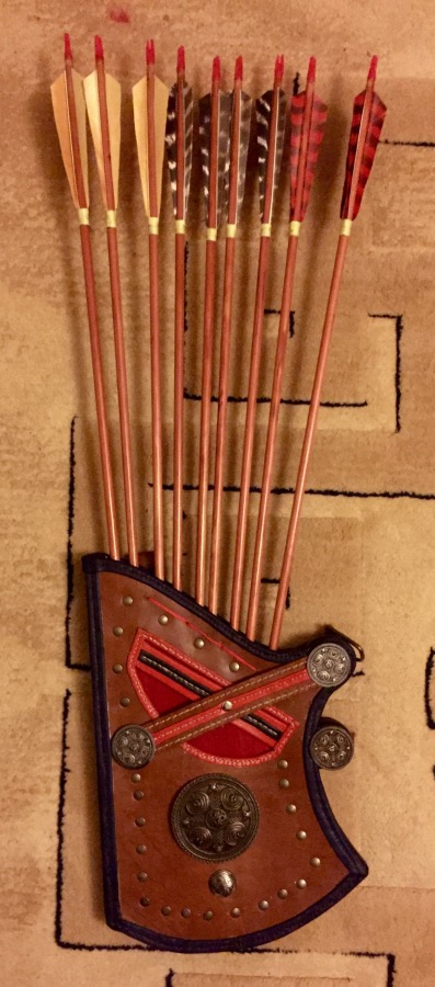 habe eine alte Ledertasche zu einem Köcher verarbeitet.