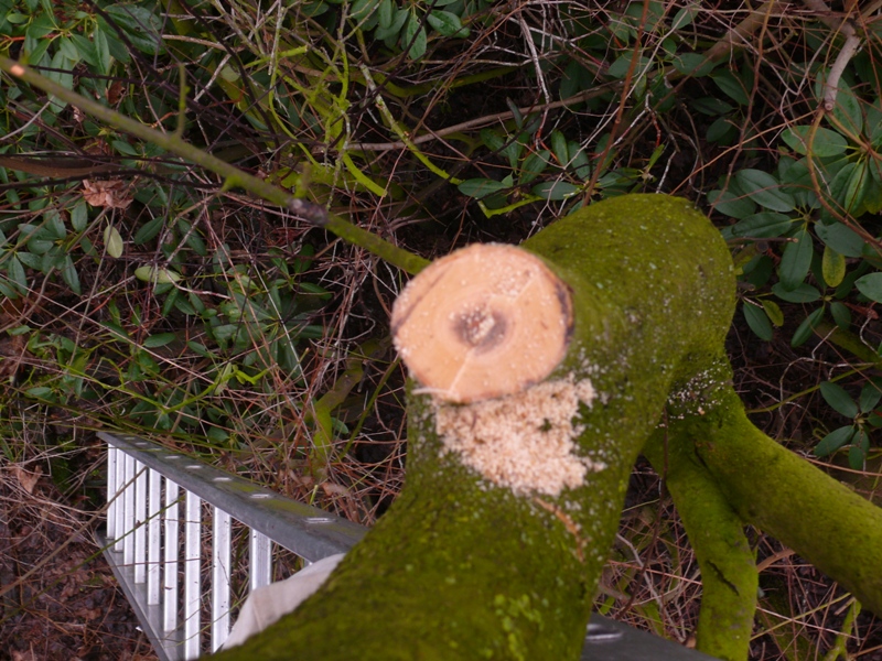 die Mirabelle ist raus. Hatte ziemlichen Drehwuchs und ist gestern beim Bodentillern geplatzt.