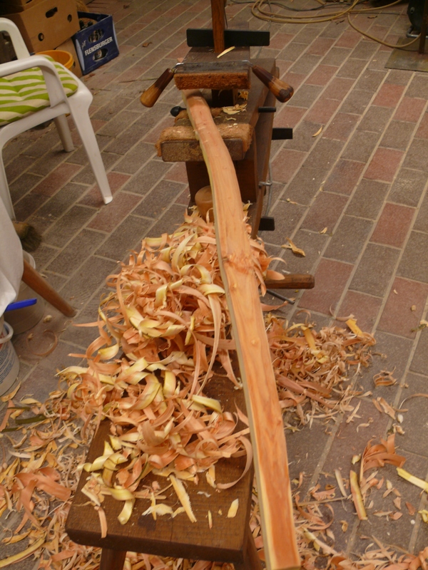 achso... Werkzeuge bisher: Zugsäge zum Ernten, Bandsäge, Schnitzbank und Ziehmesser