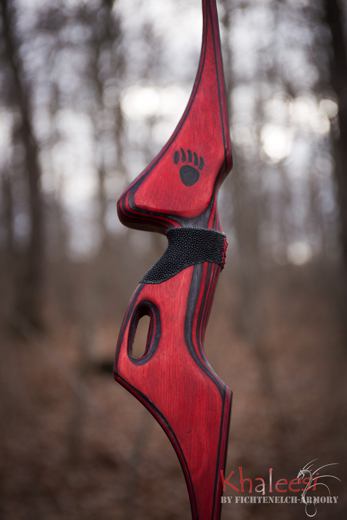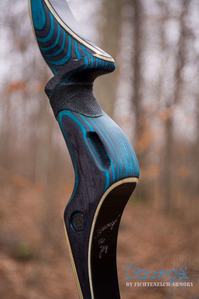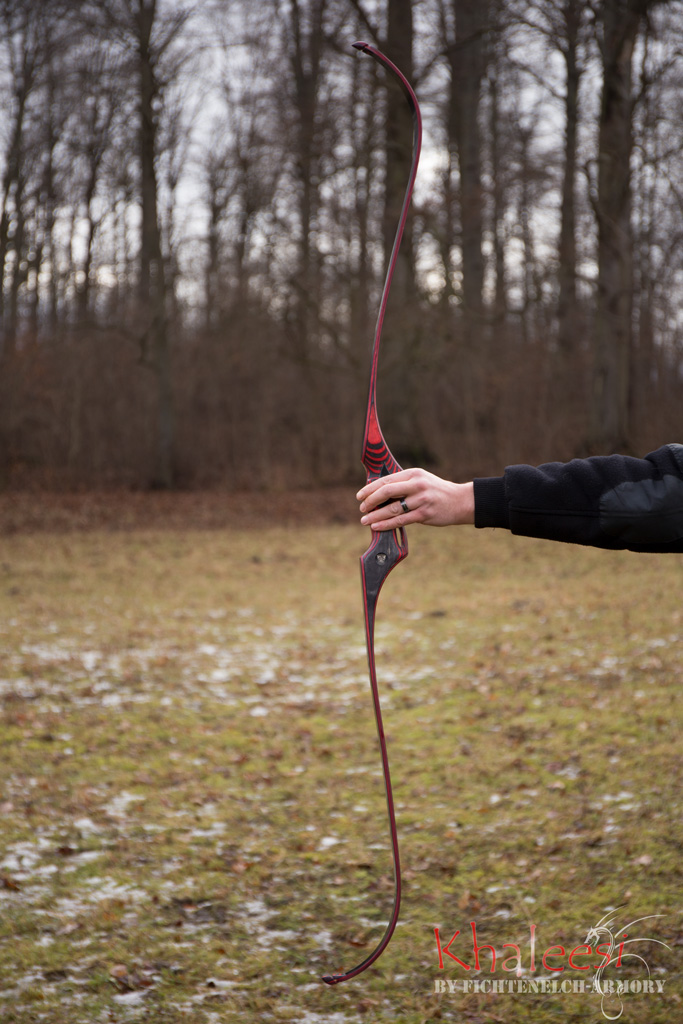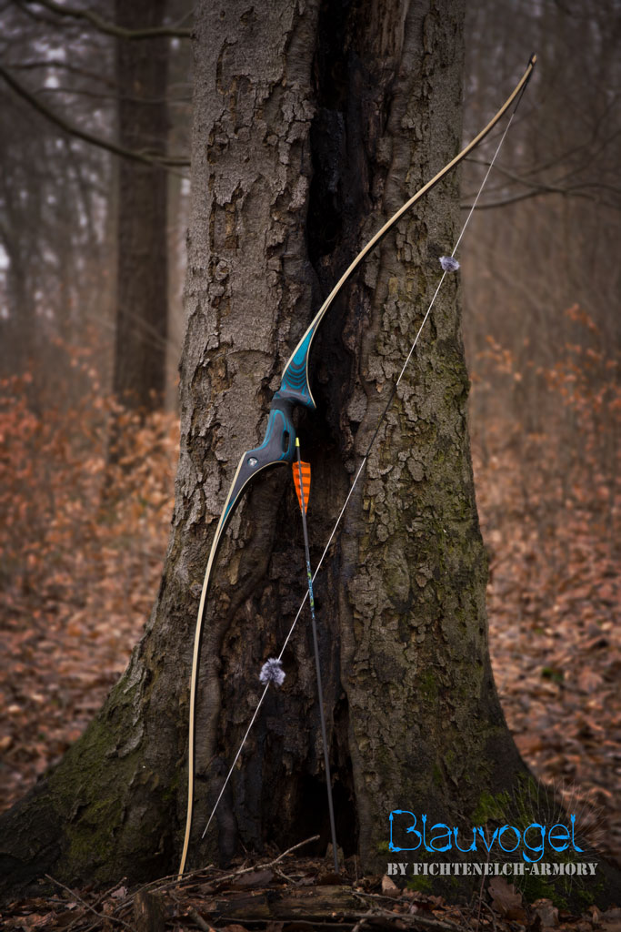 Diesmal waren es eigentlich zwei Bögen (für ein Ehepaar). Ein kurzer,roter Recurve und ein langer,blauer Langbogen.