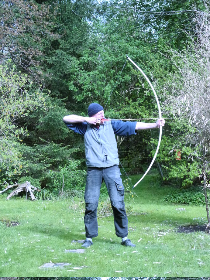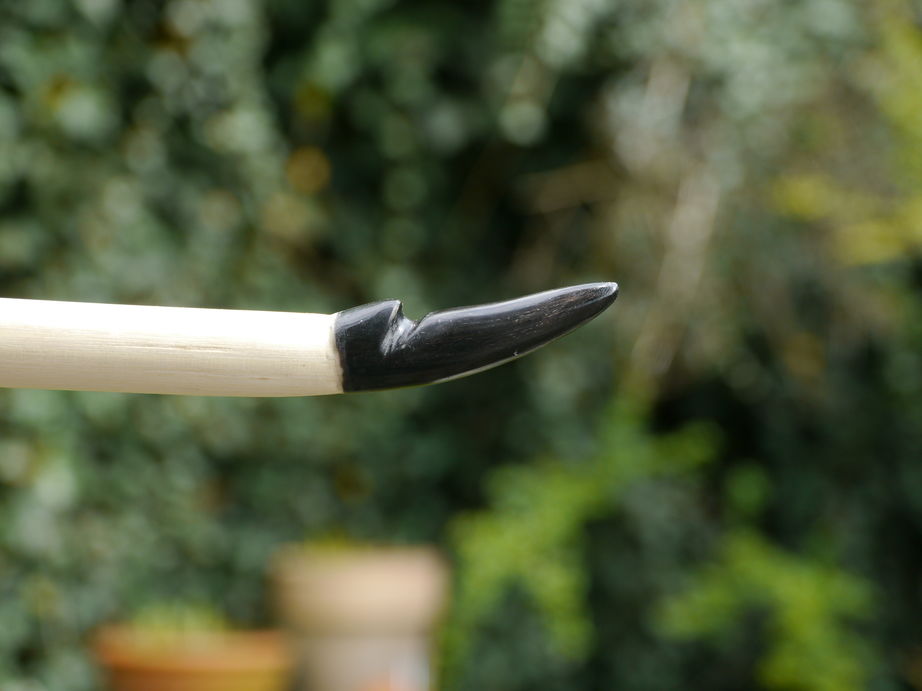 Hatte sich bei Erbse schon in die Langbögen verschossen....na gibt eben einen Haselelb.50# bei 1.80 m dürfte knitterfrei gehen. Ordentliche Hornnocks...