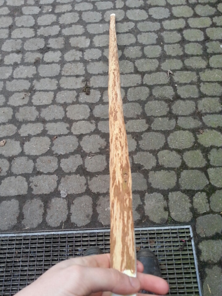 Erstmal den Griff des Hollers etwas verfeinert und gesäubert. Ich denke ich werde in den Markkanal noch ein Stück dunkleres Holz einkleben.