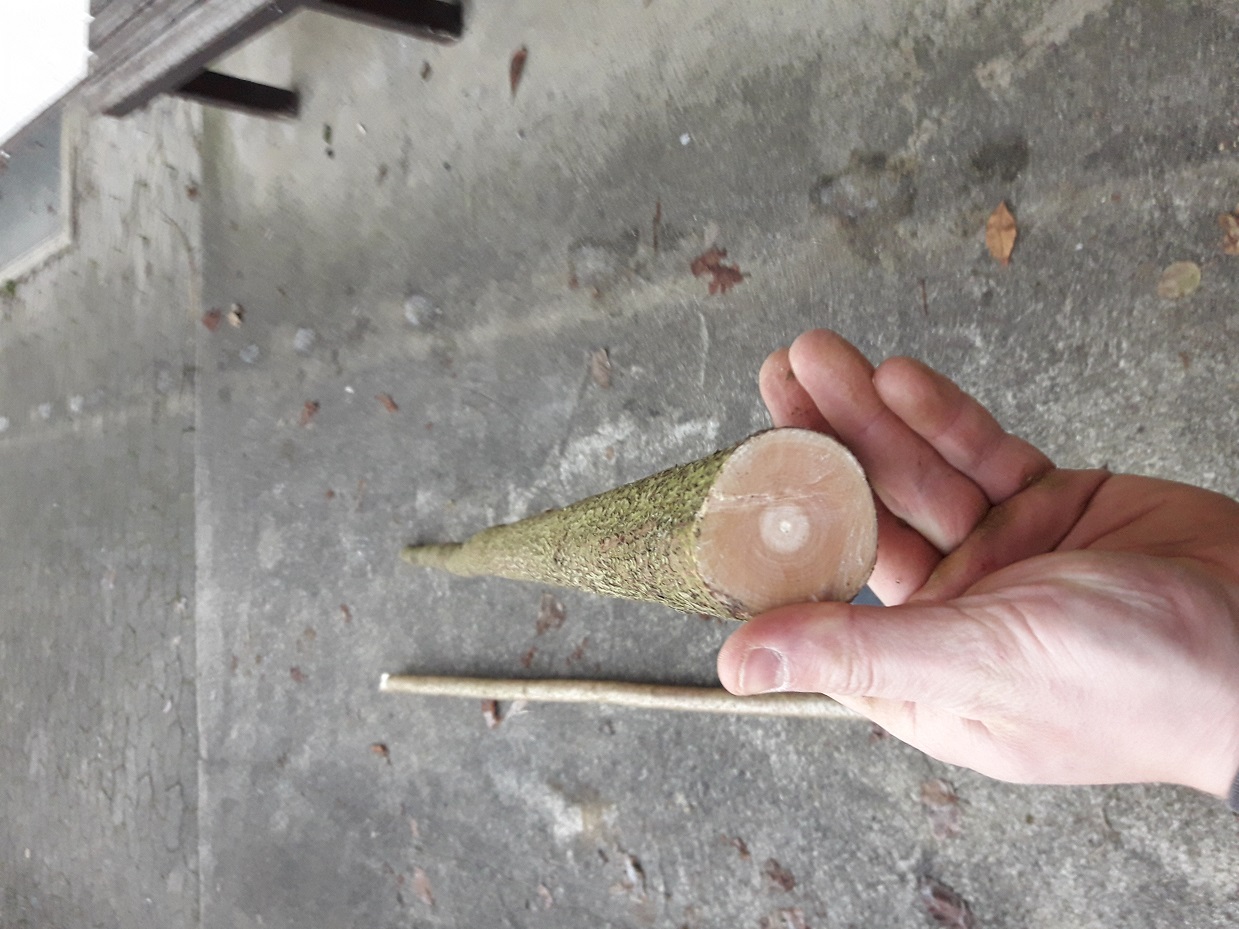Hartriegel und Hasel haben beide eine Länge von ca. 2m und einen Durchmesser von ca. 5-8cm
