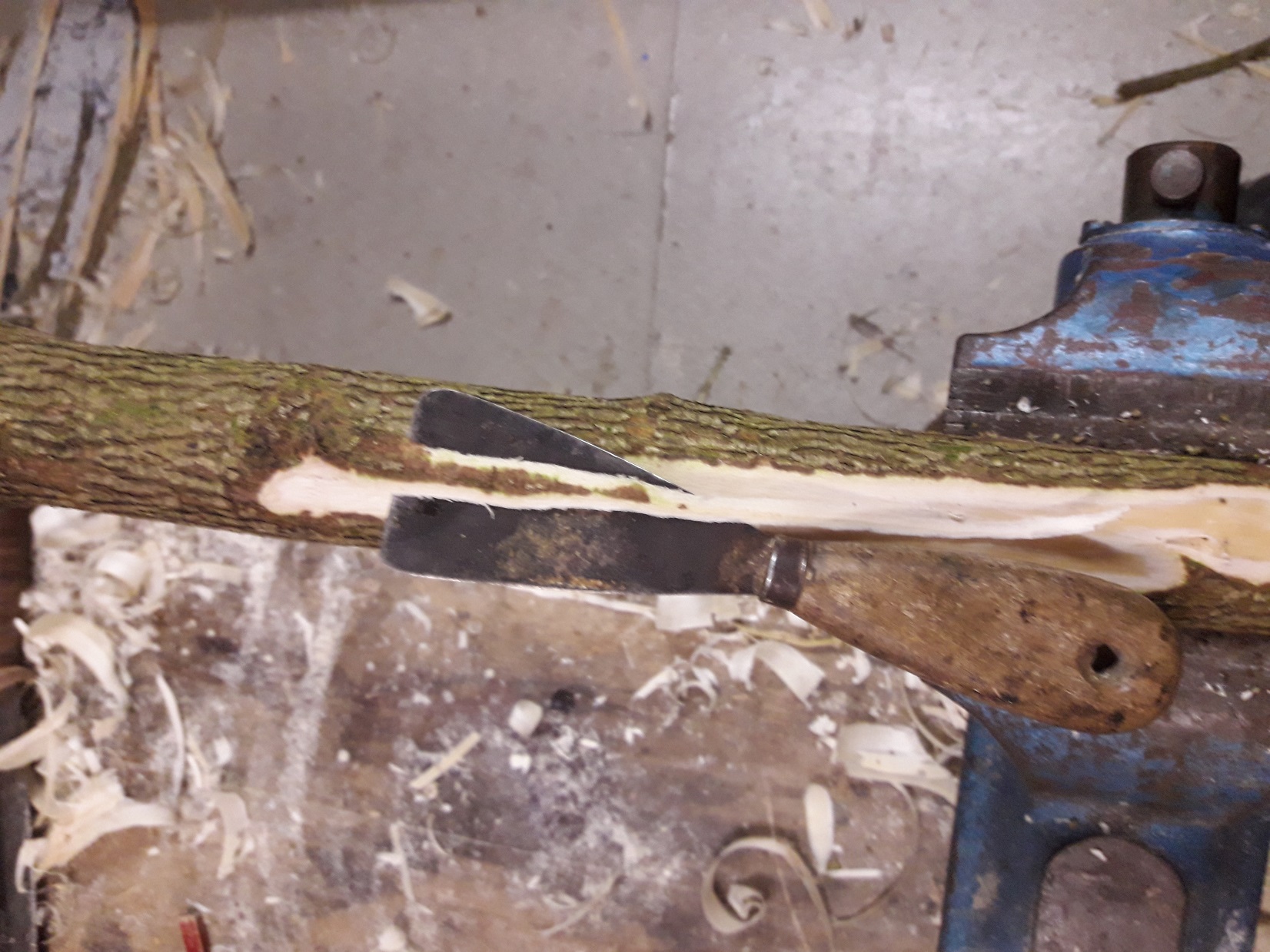 Der Hartriegel könnte evtl. am Griff reißen. Ich würde den bis zum Markkanal einschneiden.