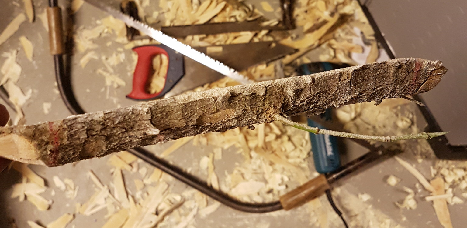 Nachdem jetzt so viele beim Turnier mitmachen, hat's mich dann doch gepackt. Obwohl ich eigentlich gerade überhaupt keine Zeit habe (bin vor 7 Wochen zum zweiten mal Vater geworden und mit einer 2 jährigen und einem Säugling gibt's dann doch immer was zu tun) will ich es dennoch versuchen und habe heute die letzten Sonnenstrahlen genutzt um die Kornelkirsche bei uns an der Kita zu fällen an der ich jeden Tag vorbei laufe.
