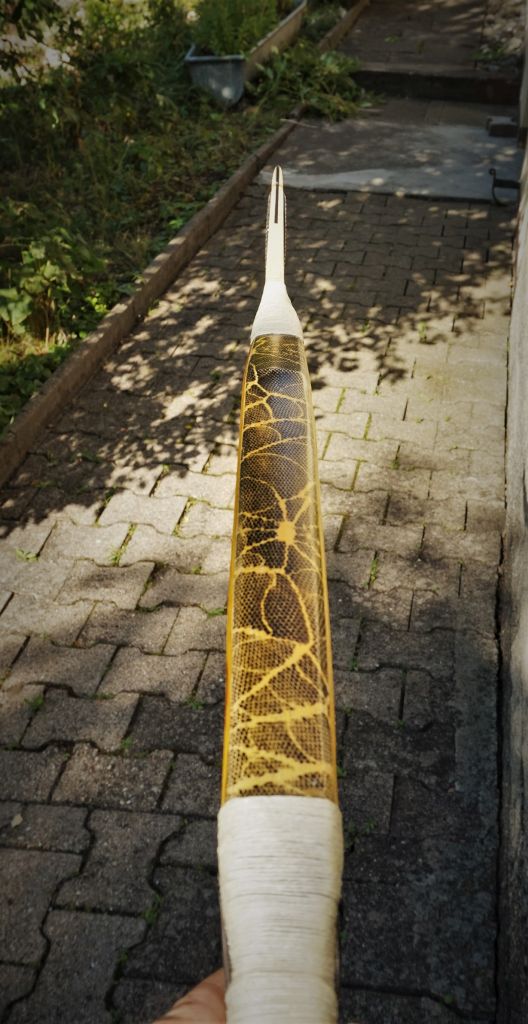 Die Arbeitszeit ist reine Arbeitszeit und der Bogen wurde über 3 Tage verteilt gebaut, sodass der Epoxidharz genug Zeit hatte zu trocknen. Man darf nicht vergessen, dass ich schon einige Bögen in dieser oder ähnlicher Bauart gebaut habe und so gut einschätzen kann, was ich in welcher Dicke benötige und wie die einzelnen Arbeitsschritte aussehen. Außerdem habe ich Zugriff auf einzelne Maschinen, die mir das Leben extrem erleichtern. Den Bogen an einem Tag zu bauen, also am Stück würde ganz schön sportlich werden und auf die Zeit kämen min. 2h Temperbox und 1h auskühlen dazu.