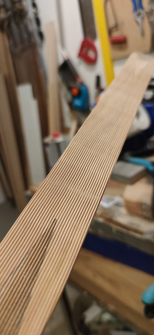 Als Facing habe ich dann 2 Büffelhornleisten genommen, welche ich mit einem Schaber verzahnt habe.