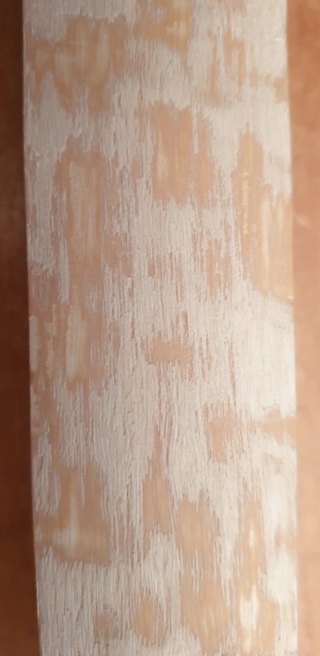 Aber leider hat sich auch wieder die Garstigkeit im Holz gezeigt, und zwar in Form eines kleinen Astes am Rand des oberen WAs. Der hatte sich vorher sehr geschickt im Stave versteckt. Zumindest war er für mich nicht als solcher zu erkennen...