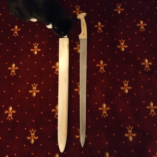 Beim ersten Schwert habe ich leider den Handgriff zu lang ausgeführt, also nochmal eines rausgeschnitten mit angepasster Handgrifflänge die nun besser in meine hand reinpasst.