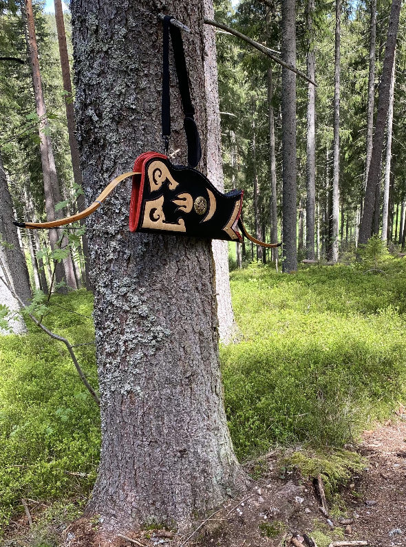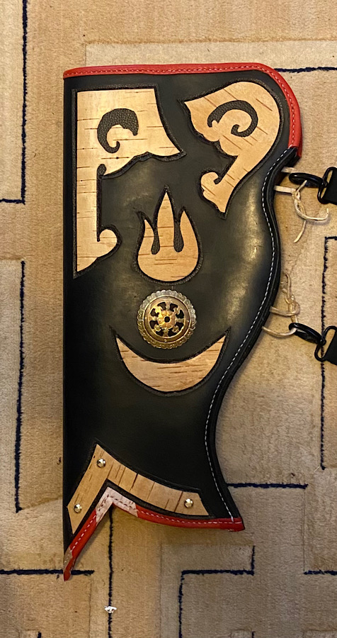 Ich übernahm die Form des Köchers und die Form der Applikationen. Diese waren aus Leder. In Birkenrinde gefallen sie mir aber bedeutend besser.