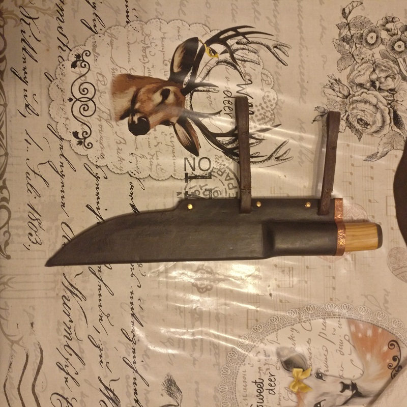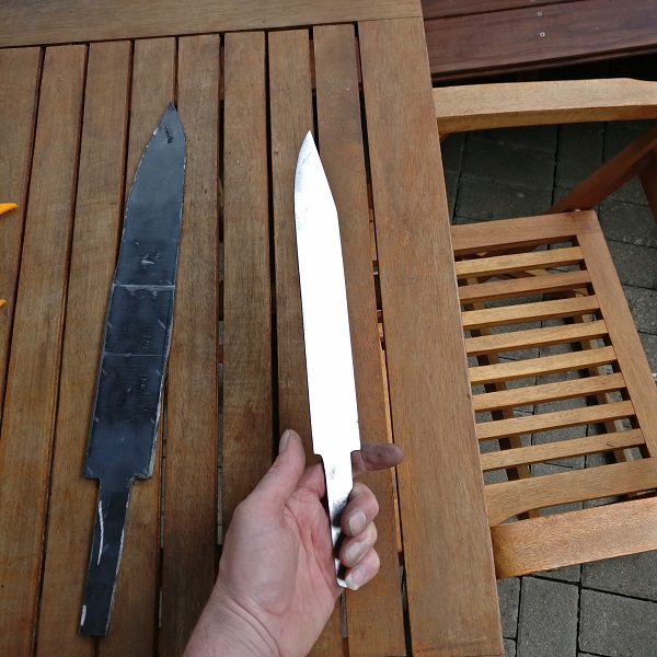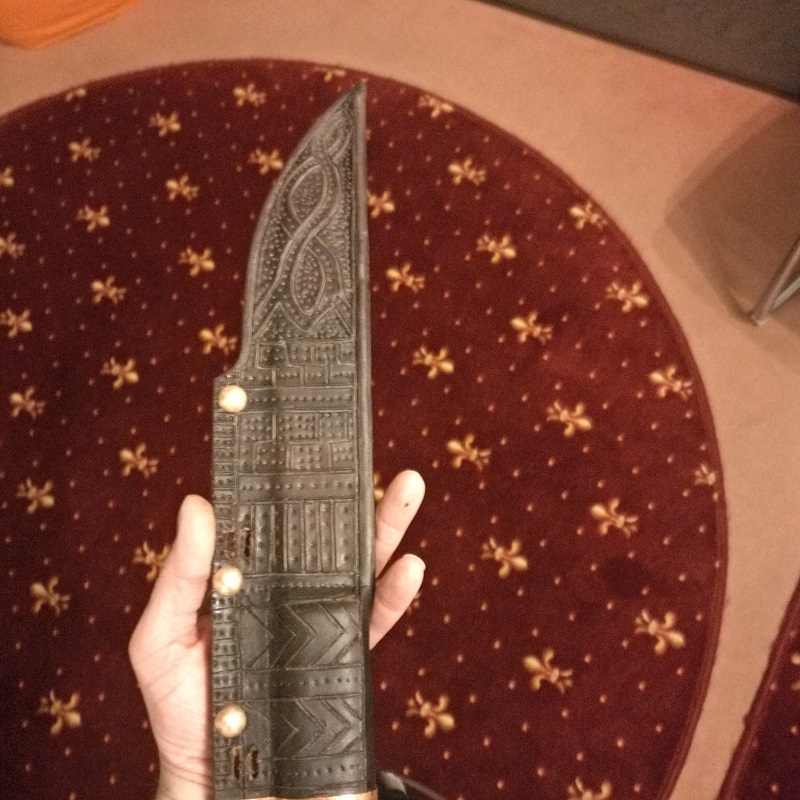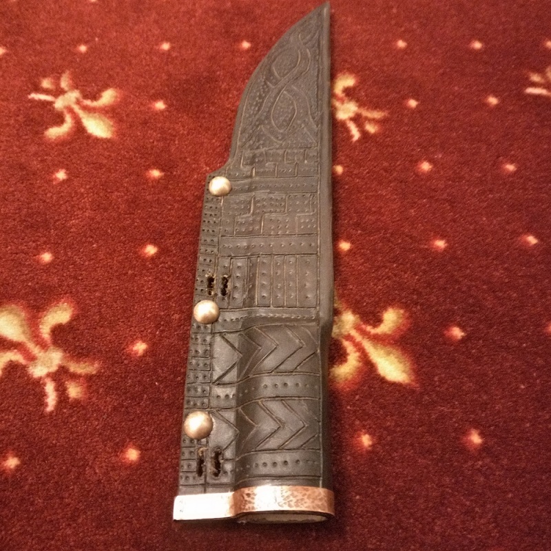 Wieder ein altes Sägeblatt benutzt und ähnliche Bauweise der Saxscheide aus natürlich gegerbtem Leder mit 3mm Stärke.