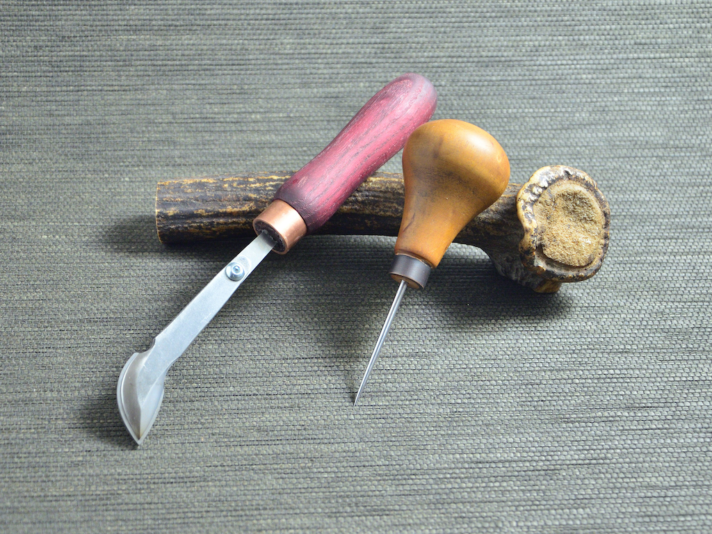 Ich hab ja erwähnt die Kopfform ist bei Crimson Hides „geklaut“. Ich hab ein parr Prickeisen von denen, die machen top Werkzeuge. Zudem sind die Eigentümer richtig nett, ich mich mit denen 2018 als in Singapur war mal auf einen Kaffee getroffen (und auch Werkzeuge mitgenommen)