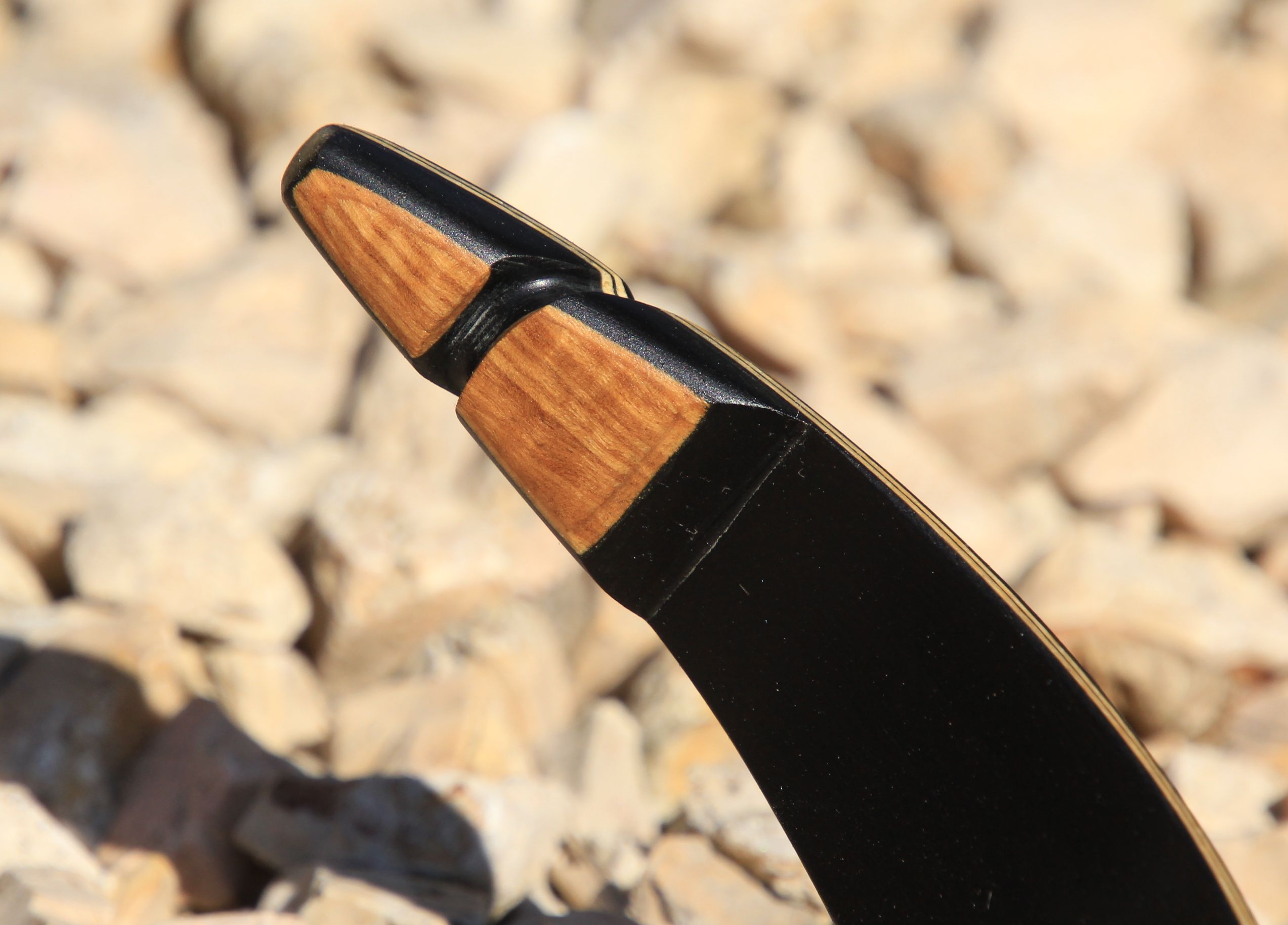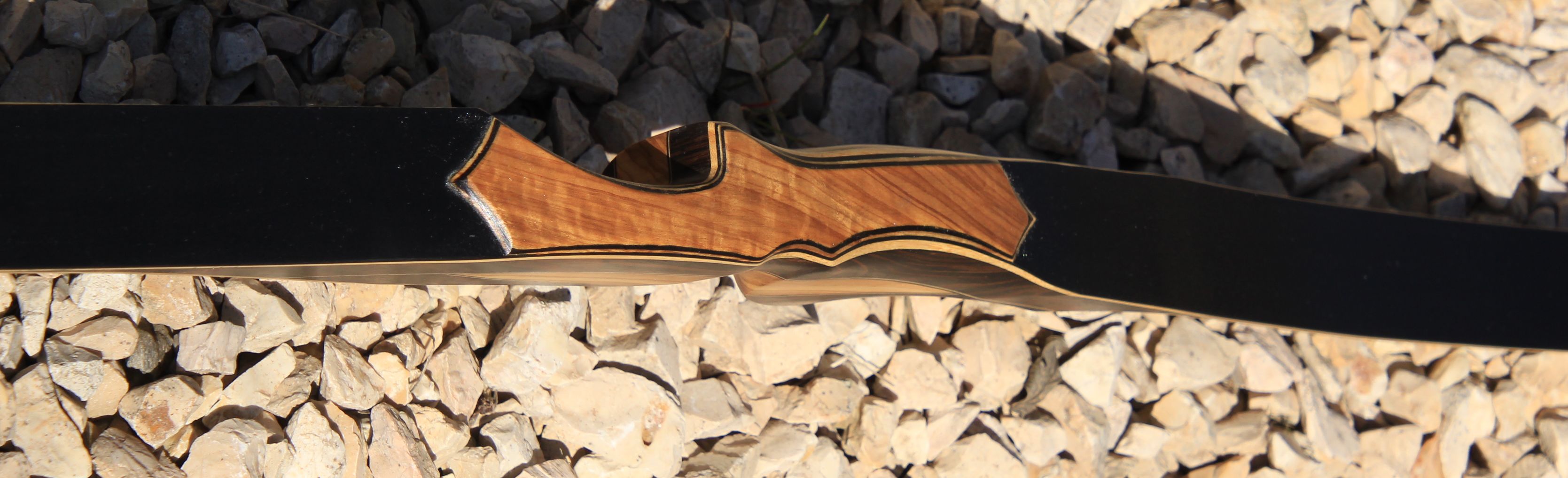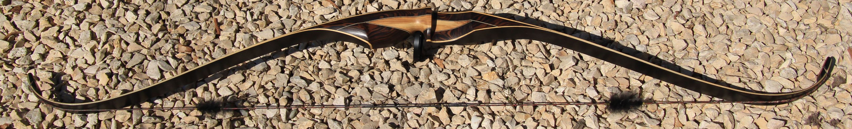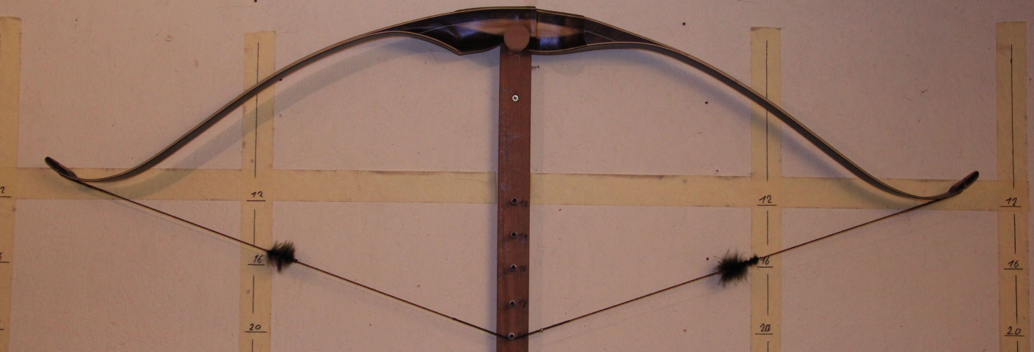 Der Bogen hat eine Sehnenlänge von 158cm und aufgespannt misst er von Sehnenkerbe zu Sehnenkerbe 143cm