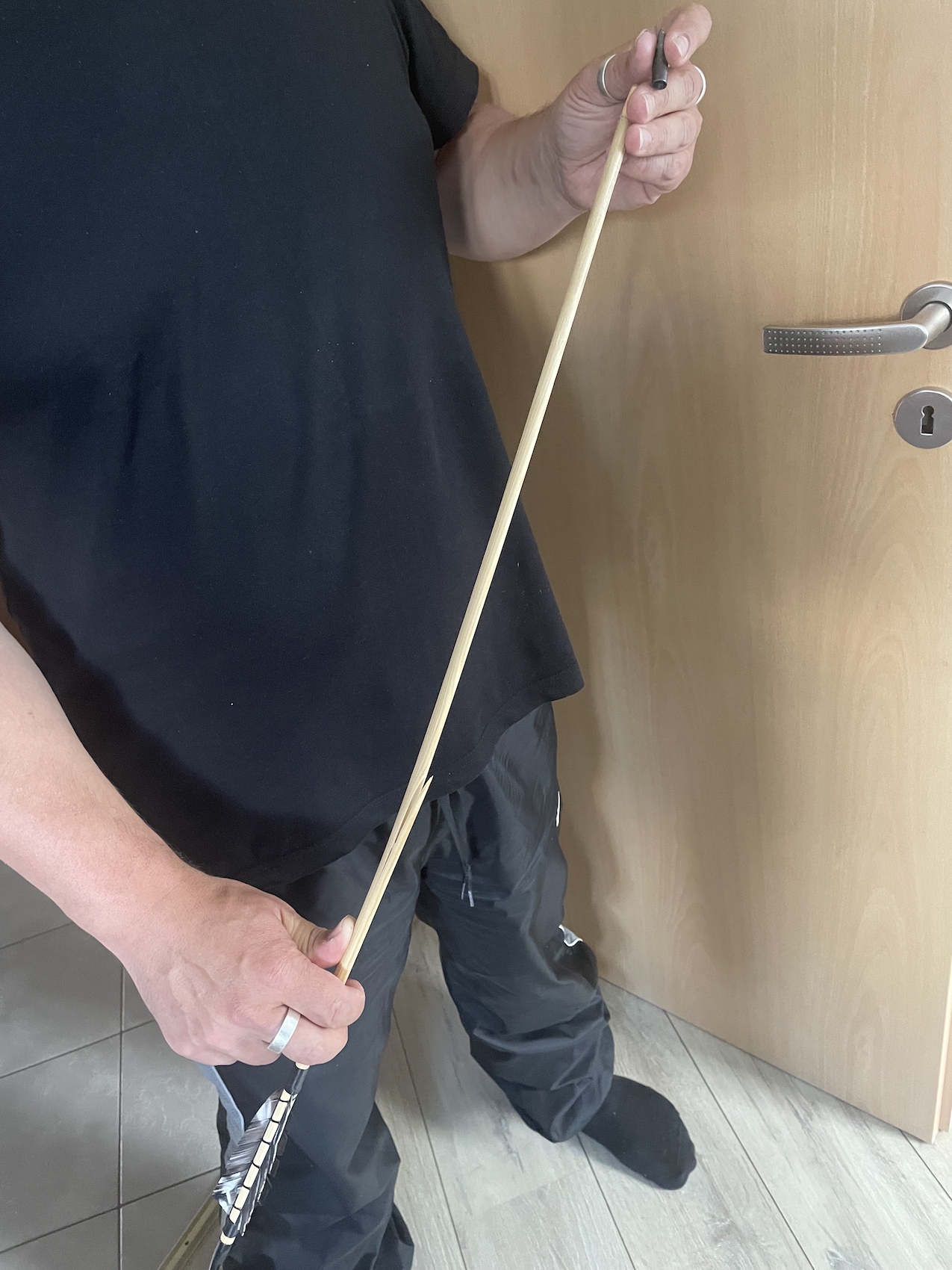Das Griffleder muss sein damit sich meine Fingerringe nicht in die Eibe graben und Abdrücke im Holz hinterlassen.