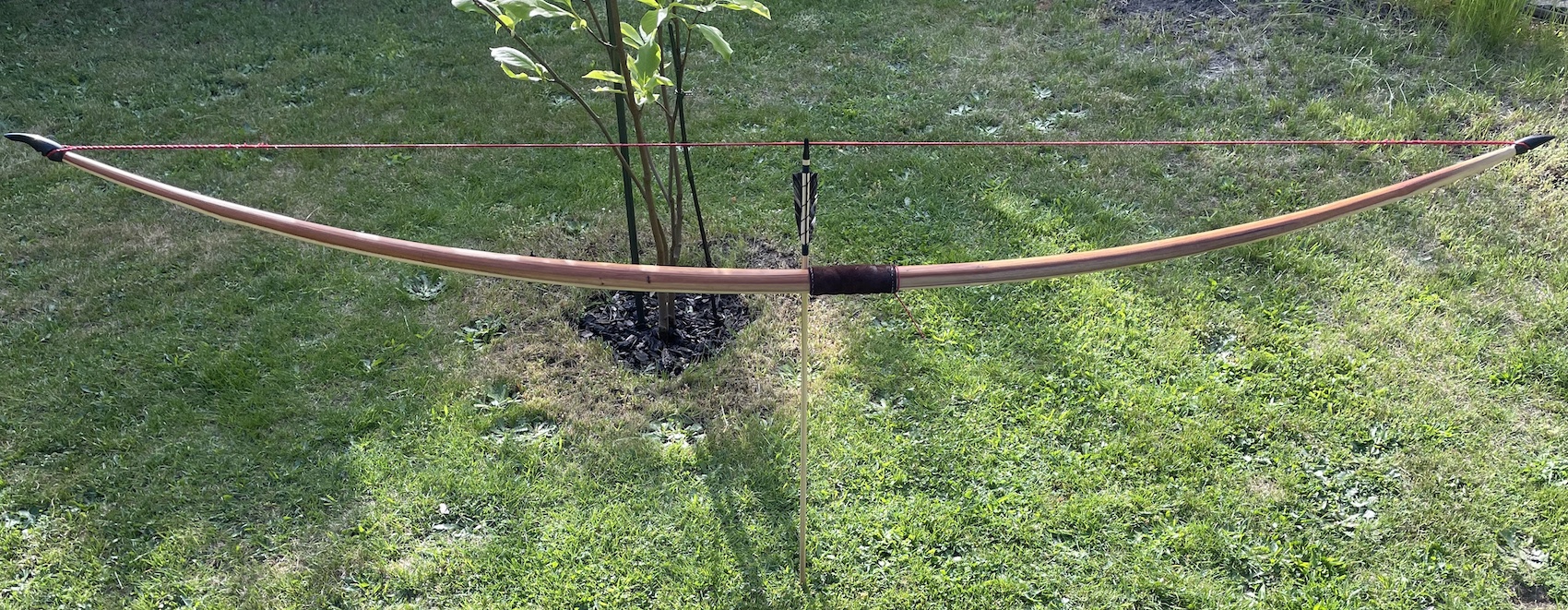 Und ein gewickeltes Leder kommt einfach nicht in Frage, das sieht immer so billig nach dem Handgriff eines Tennisschlägern aus. ... und hier war wohl der Pfeil zu schwach, am Bogen kann es nicht gelegen haben und die Palette war auch knapp 14m Meter entfernt, in die er 2cm tief mit einem faserigen Knirschen einschlug.