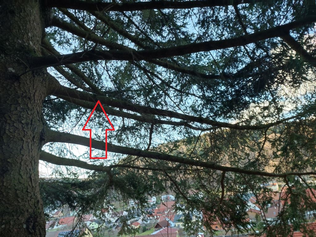 für ein Fichtenast wirklich gerade...