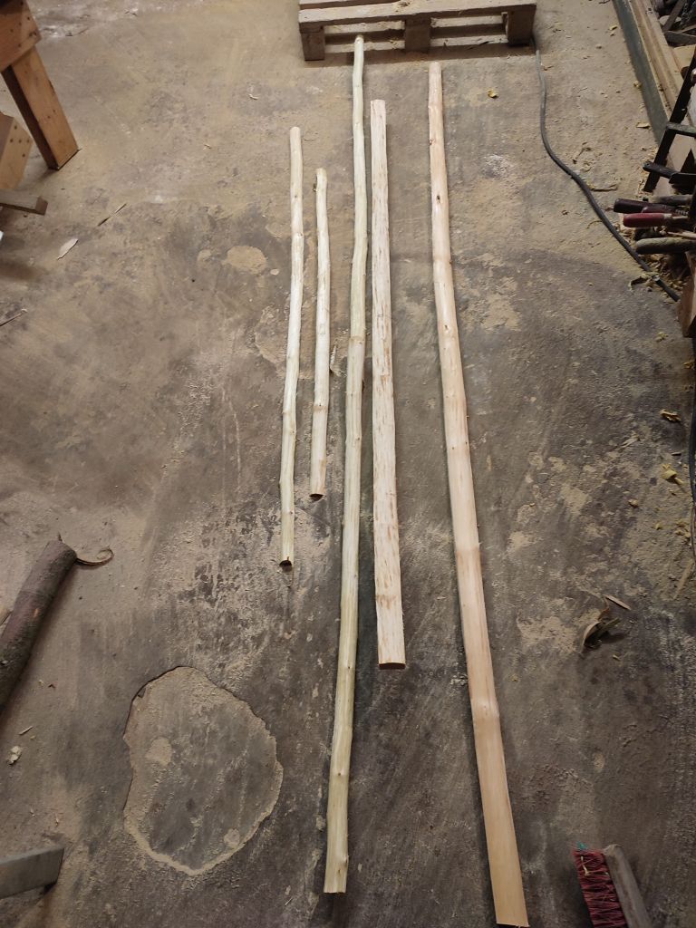 die Breite auf 5cm zugeschnitten und entrindet