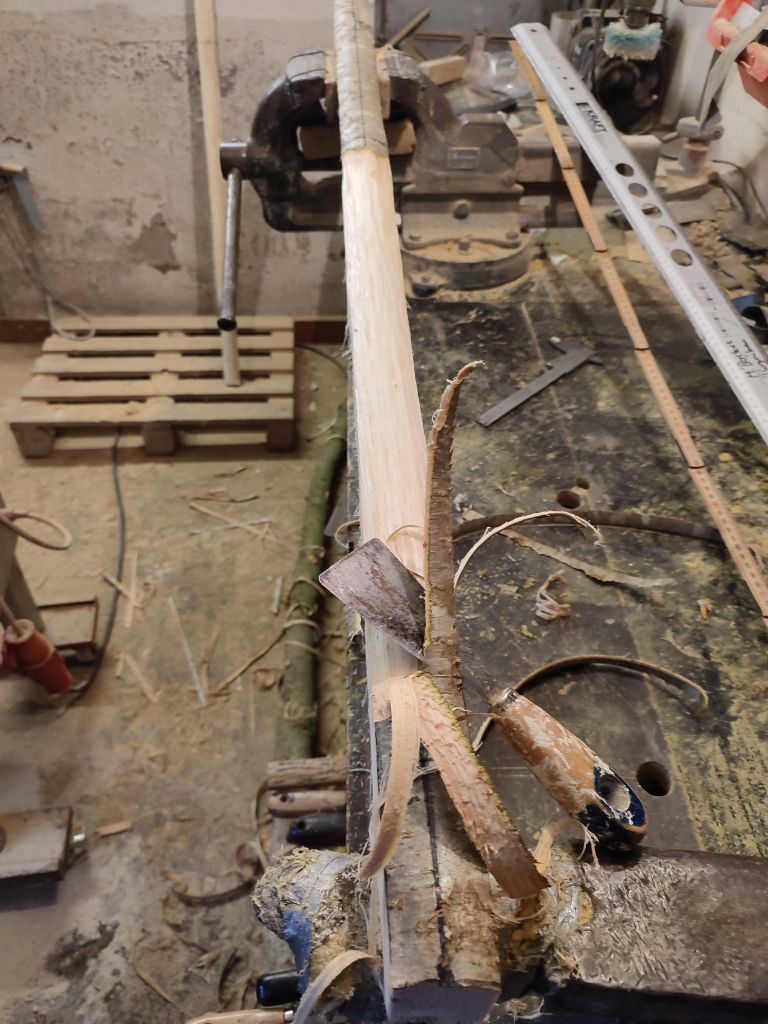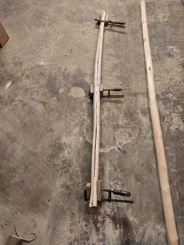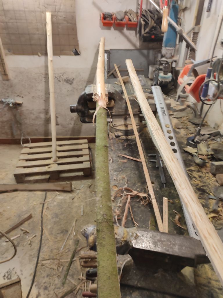 Morgen werden die Teile noch alle eingespannt, so wie es brauch... für heute war es einfach genug. Die Klingen für den reiterbogen werden aus den Haselresten geschnitten....