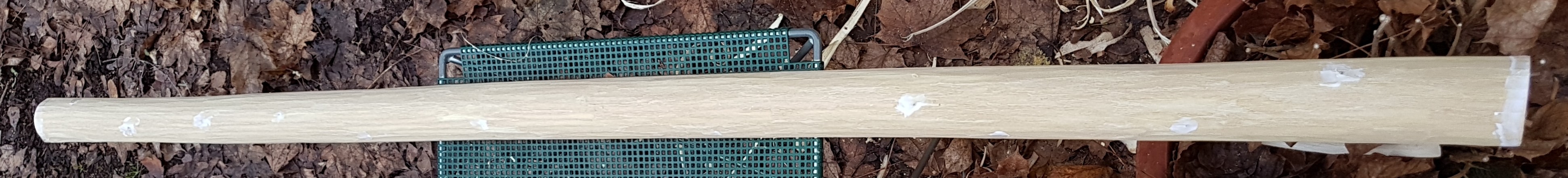 Kurz vor Kolbingen fiel mir ein, dass ich auch in der Primitive Selfbow-Klasse Flight schießen will, also musste ein passender Bogen her. Vom Saplingbow 12 hatte ich noch die 2. Hälfte des damals verwendeten Saplings - sehr gerade gewachsen, kaum Wellen.