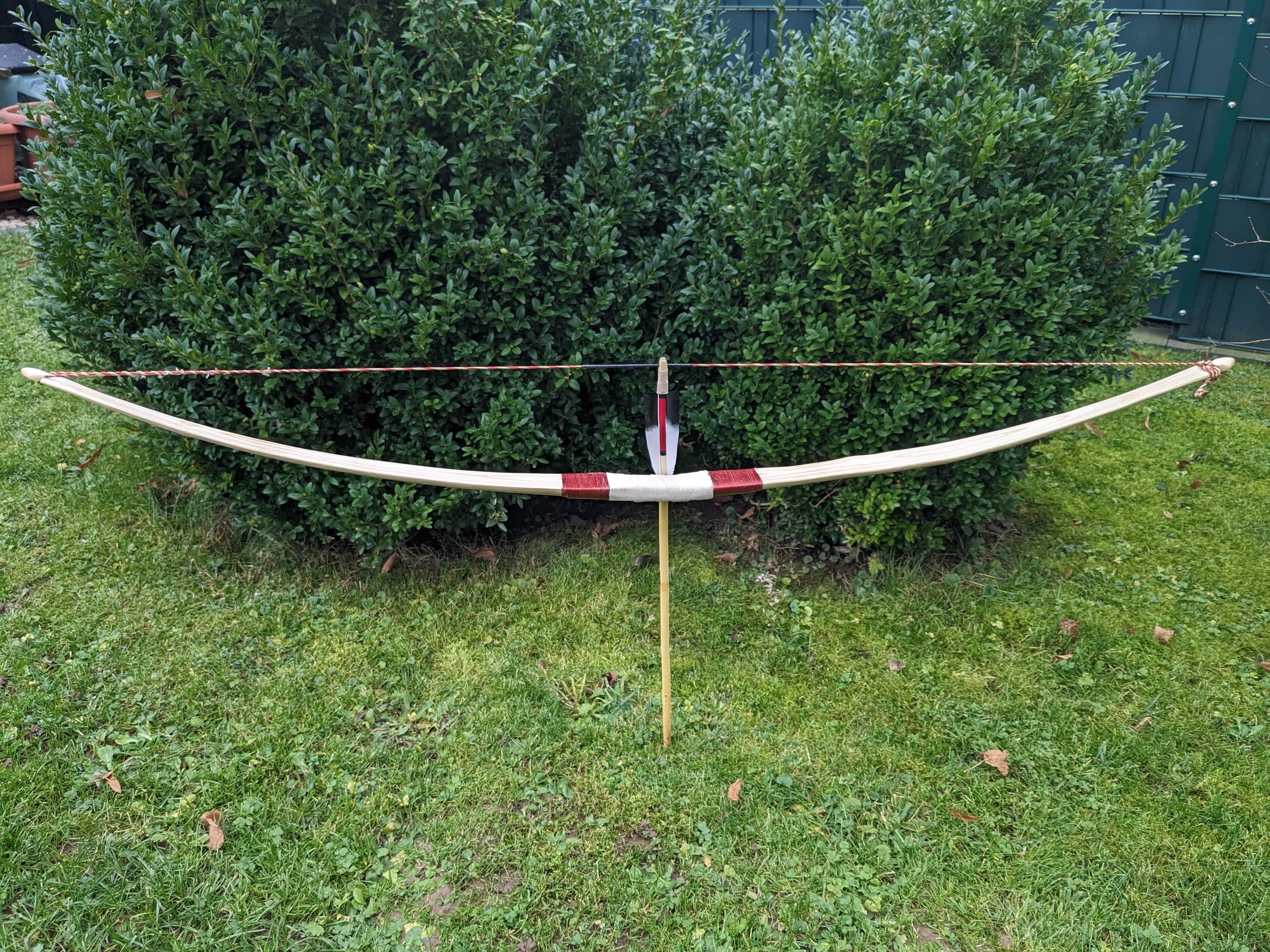 Ich habe jetzt bei dem Foto nicht primär darauf geachtet wie ich den Pfeil genau nocke. Allerdings hat es sich in dem Moment aber auch nicht zu weit überhöht oder unhandlich für mich angefühlt. Beim Bogenschießen bin ich definitiv nochmal etwas mehr Anfänger als schon beim Bogenbau, von daher danke im Vorraus für Korrekturvorschläge.