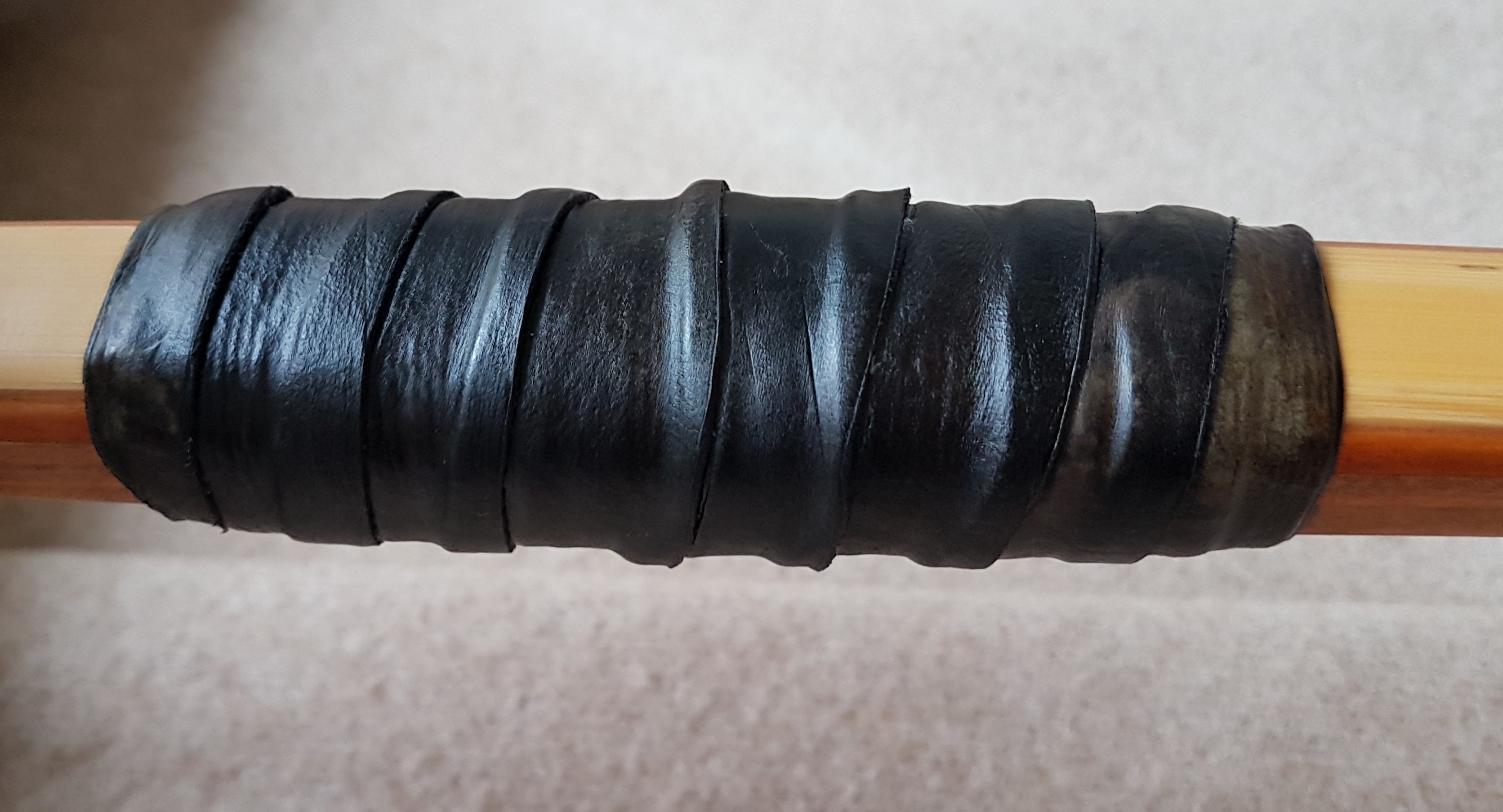 Griffwicklung Rohhaut mit Tannin gegerbt und mit Eisenacetat gefärbt