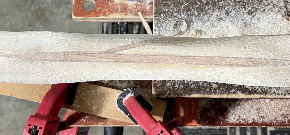In den Entlastungschnitt am Griff habe ich noch eine Leiste eingeklebt, ich hoffe das bringt noch etwas Stabilität für den Keil.