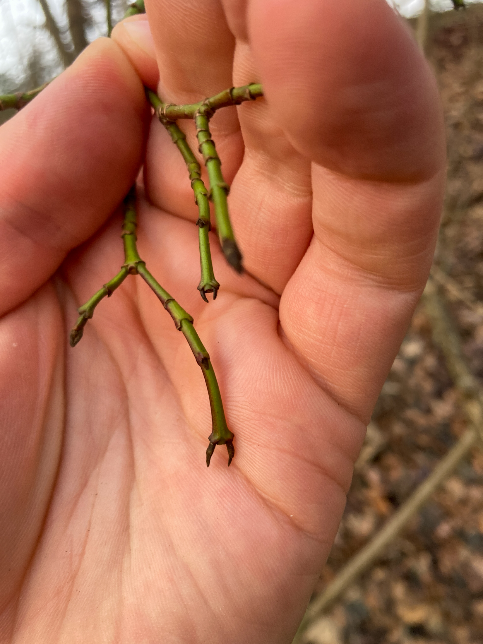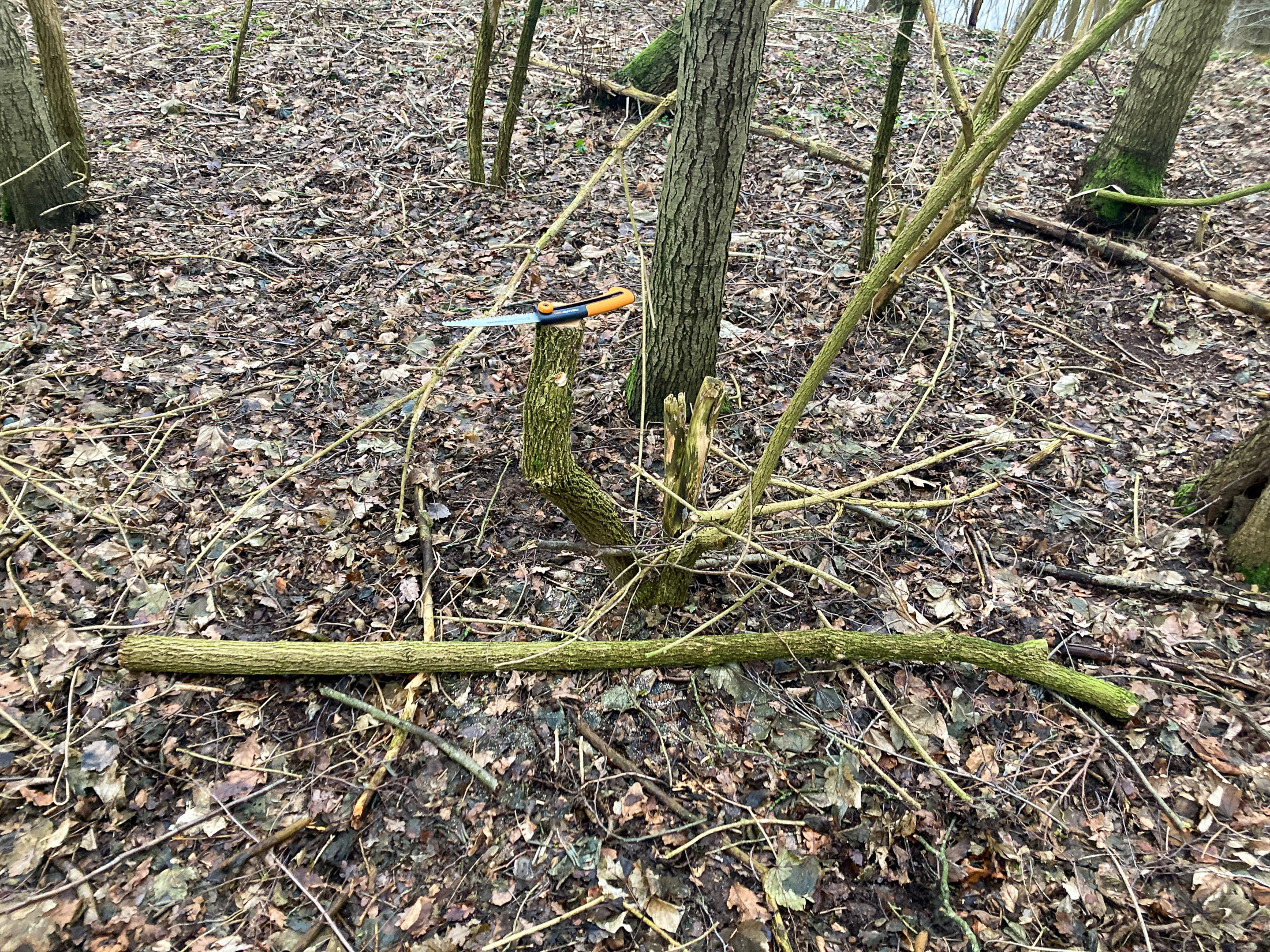 Schwerpunktmäßig wollte ich einen Hollunder haben, da das Holz bei mir noch nicht unter dem Messer war. Die Suche nach längeren, geeigneten Stücken gestaltet sich hier als schwieig. Mein Eindruck ist, dass die meisten Äste oder Stämme garnicht erst alt genug werden, vielleicht liegt es am feucht-warmen münsterländer Wetter im Winter.