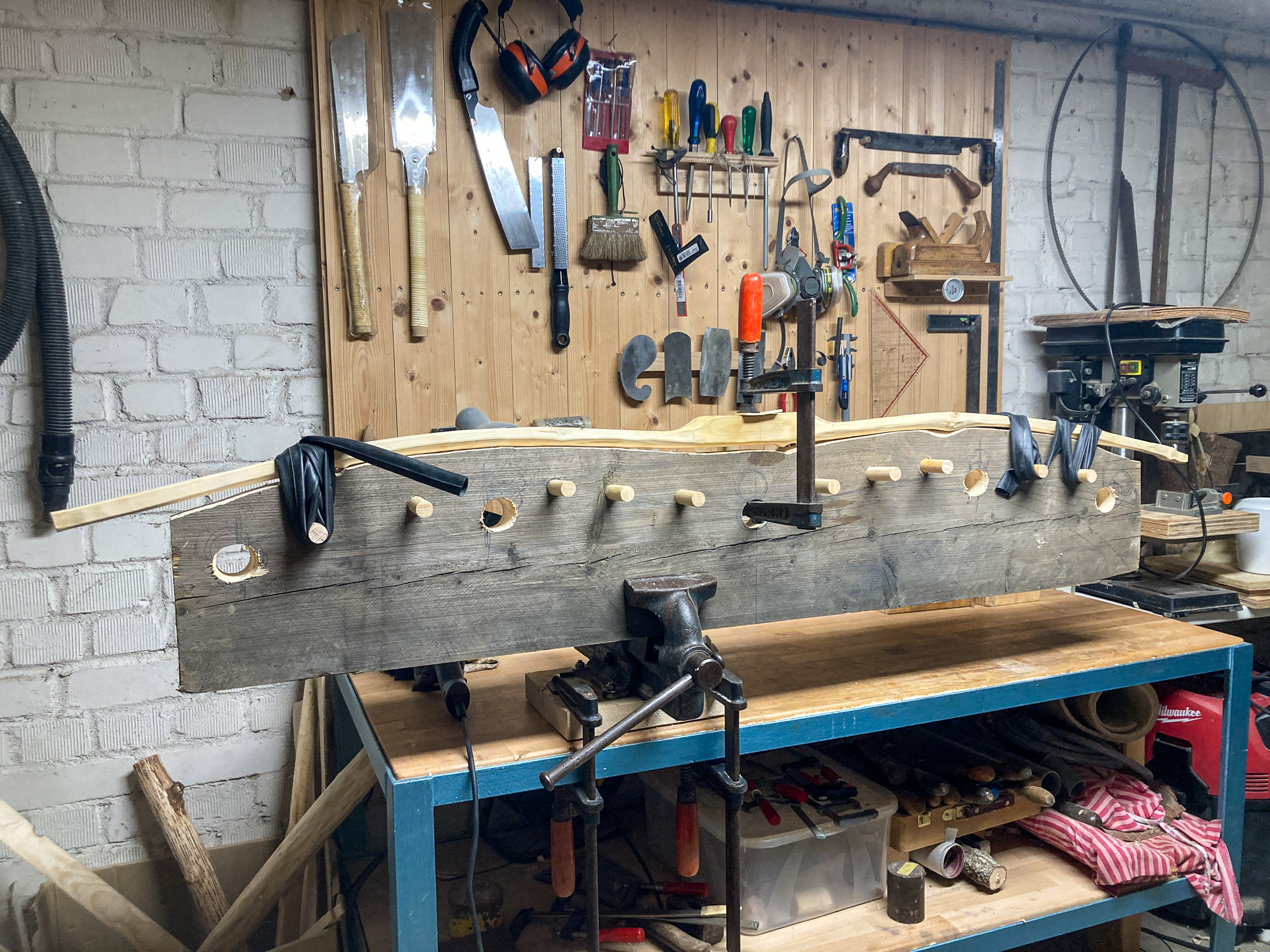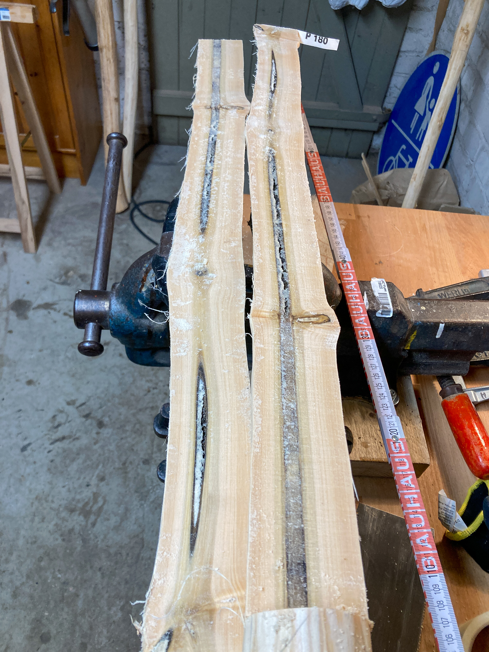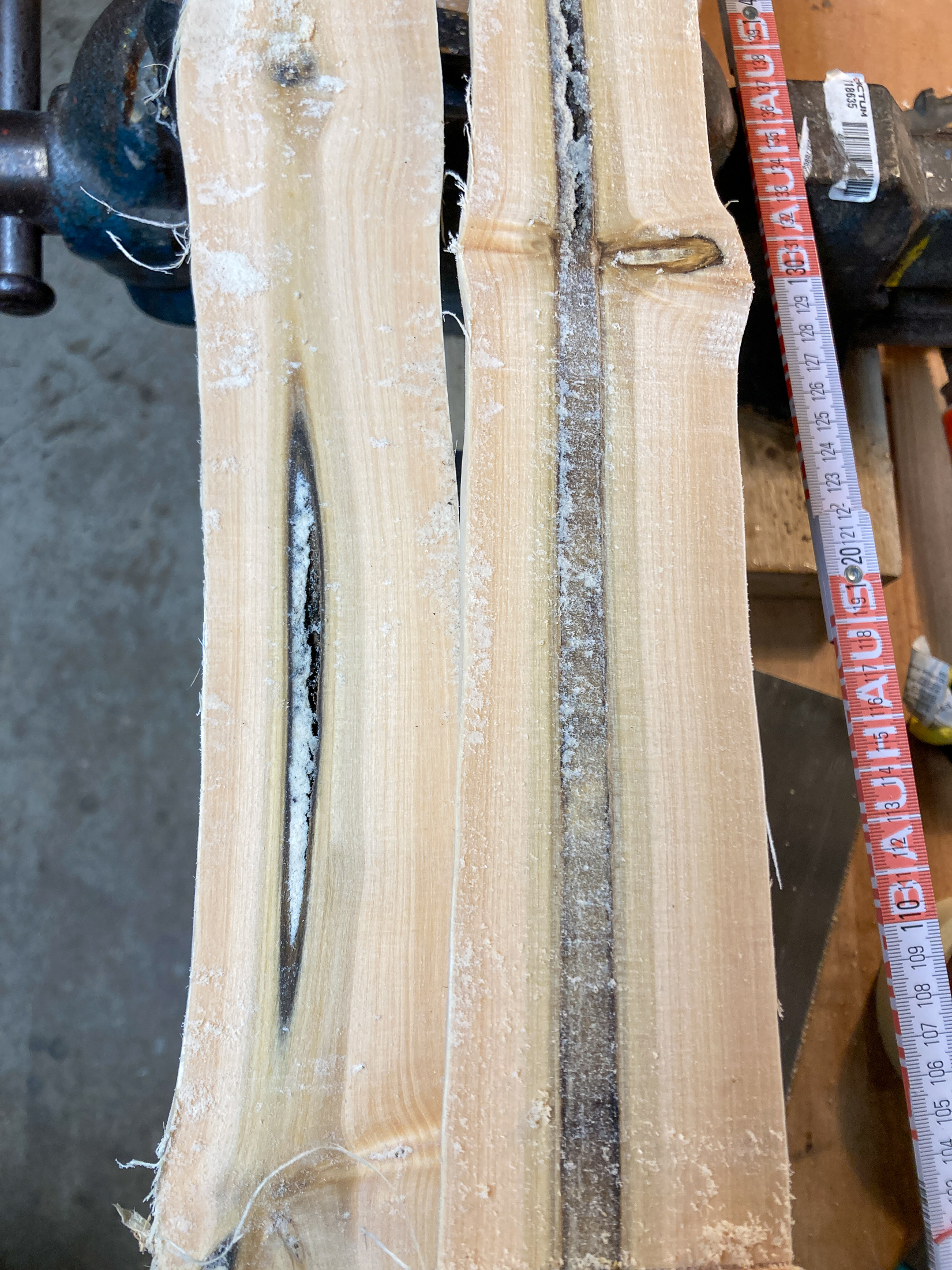 Bei mir hat sich auf dem Weg noch eine Robinie dazugesellt, die der Buche den Rücken stark machen soll. Eigentlich sollte es ein Hasel werden, aber warum einfach wenn es auch komplizierter gehen kann. Ich habe noch ein Hasel-Laminat und wenn die Robinie nicht klappt wird das mit dem zweiten Teil der Buche verheiratet.